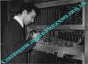 Online document of the day:  View Image Full members only | Item: 139 Broughton Crossbar exch 1964. DSB/LC rack. Engineer testing Xbar switch. Switch hinged down. Original BW print in archives & JPEG in DDA |